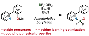 Synthesis of N,O-Bidentate Difluoroboron Complexes via Iodide-Promoted Demethylative Borylation