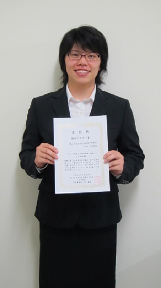 | 上月いずみさんが日本化学会中国四国支部支部長賞を受賞しました。写真 |