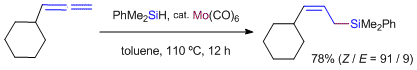 Synthesis of Linear Allylsilanes via Molybdenum-Catalyzed Regioselective Hydrosilylation of Allenes. Asako, S.; Ishikawa, S.; Takai, K. ACS Catal. 2016, 6 (5), 3387-3395. (Article) [LINK] Graphical Abstract