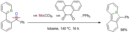 Molybdenum-Catalyzed Deoxygenative Cyclization of Carbonyl Compounds for the Synthesis of Pyrido[2,1-a]isoindoles. Asako, S.; Kobayashi, T.; Ishihara, S.; Takai, K. Asian J. Org. Chem. 2021, 10 (4), 753-756. (Communication) [LINK] Graphical Abstract