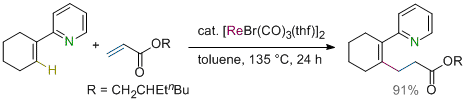 Reactions and Mechanistic Studies of Rhenium-Catalyzed Insertion of α,β-Unsaturated Carbonyl Compounds into a C-H Bond. Kuninobu, Y.; Nishina, Y.; Okaguchi, K.; Shouho, M.; Takai, K. Bull. Chem. Soc. Jpn. 2008, 81 (11), 1393-1401. (Article) =BCSJ Award Article= [LINK] Graphical Abstract
