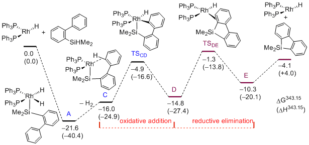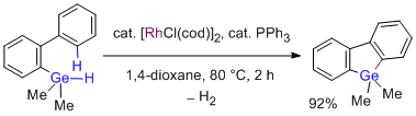 Rhodium-Catalyzed Silylative and Germylative Cyclization with Dehydrogenation Leading to 9-Sila- and 9-Germafluorenes: A Combined Experimental and Computational Mechanistic Study. Murai, M.; Okada, R.; Asako, S.; Takai, K. Chem. Eur. J. 2017, 23 (45), 10861-10870. (Article) =Hot Paper= [LINK] Graphical Abstract