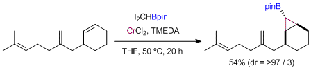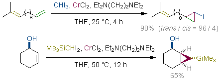 Preparation of Cyclopropylsilanes from Terminal Alkenes with Organochromium Reagents. Takai, K.; Hirano, M.; Toshikawa, S. Synlett 2004, (8), 1347-1350. (Communication) [LINK] Graphical Abstract