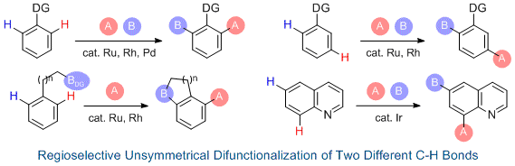 Unsymmetrical Difunctionalization of Two Different C-H Bonds in One Pot Under Transition-Metal Catalysis. Murai, M.; Takai, K. Synthesis 2019, 51 (1), 40-54. (Invited Review) as part of the 50 Years SYNTHESIS - Golden Anniversary Issue [LINK] Graphical Abstract