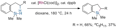 Rhodium-Catalyzed Intramolecular Silylation of Unactivated C(sp3)-H Bonds. Kuninobu, Y.; Nakahara, T.; Takeshima, H.; Takai, K Org. Lett. 2013, 15 (2), 426-428. (Communication) [LINK] Graphical Abstract