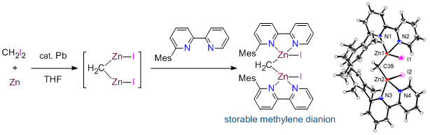 Isolation and Structural Characterization of Geminal Di(iodozincio)methane Complexes Stabilized with Nitrogen Ligands. Nishida, Y.; Hosokawa, N.; Murai, M.; Takai, K. J. Am. Chem. Soc. 2015, 137 (1), 114-117. (Communication) [LINK] Graphical Abstract