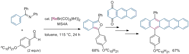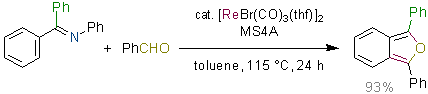 Rhenium-Catalyzed Insertion of Aldehyde into a C-H Bond: Synthesis of Isobenzofuran Derivatives. Kuninobu, Y.; Nishina, Y.; Nakagawa, C.; Takai, K. J. Am. Chem. Soc. 2006, 128 (38), 12376-12377. (Communication) [LINK] Graphical Abstract