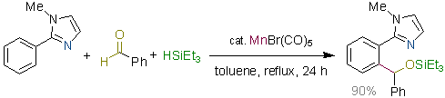 Manganese-Catalyzed Insertion of Aldehydes into a C-H Bond. Kuninobu, Y.; Nishina, Y.; Takeuchi, T.; Takai, K. Angew. Chem. Int. Ed. 2007, 46 (34), 6518-6520. (Communication) =Hot Paper= [LINK] Graphical Abstract