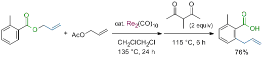 Rhenium-Catalyzed Allylation of C-H Bonds of Benzoic and Acrylic Acids. Kuninobu, Y.; Ohta, K.; Takai, K. Chem. Commun. 2011, 47 (38), 10791-10793. (Communication) [LINK] Graphical Abstract