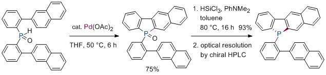 Palladium-Catalyzed Synthesis of Dibenzophosphole Oxides via Intramolecular Dehydrogenative Cyclization. Kuninobu, Y.; Yoshida, T.; Takai, K. J. Org. Chem. 2011, 76 (18), 7370-7376. (Article) [LINK] Graphical Abstract