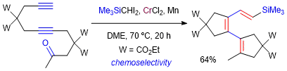 Cyclization of 1,n-Enynes Initiated by the Addition Reaction of gem-Dichromiomethane Reagents to Alkynes. Murai, M.; Taniguchi, R.; Takai, K. Org. Lett. 2020, 22 (10), 3985-3988. (Communication) [LINK] Graphical Abstract