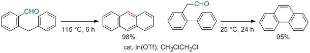 Indium-Catalyzed Construction of Polycyclic Aromatic Hydrocarbon Skeletons via Dehydration. Kuninobu, Y.; Tatsuzaki, T.; Matsuki, T.; Takai, K. J. Org. Chem. 2011, 76 (17), 7005-7009. (Article) [LINK] Graphical Abstract