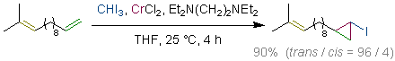 Heterosubstituted Cyclopropanation of Alkenes with Organochromium Reagents Derived from Heterosubstituted Dihalomethanes, CrCl2, and Tetraalkylethylenediamine. Takai, K.; Toshikawa, S.; Inoue, A.; Kokumai, R.; Hirano, M. J. Organomet. Chem. 2007, 692 (1-3), 520-529. (Article) [LINK] Graphical Abstract