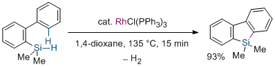 Rhodium-Catalyzed Synthesis of Silafluorene Derivatives via Cleavage of Silicon-Hydrogen and Carbon-Hydrogen Bonds. Ureshino, T.; Yoshida, T.; Kuninobu, Y.; Takai, K. J. Am. Chem. Soc. 2010, 132 (41), 14324-14326. (Communication) [LINK] Graphical Abstract