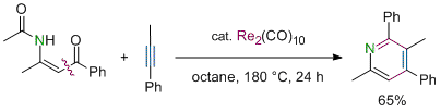 Rhenium-Catalyzed Regioselective Synthesis of Multisubstituted Pyridines from β-Enamino Ketones and Alkynes via C-C Bond Cleavage. Yamamoto, S.-i.; Okamoto, K.; Murakoso, M.; Kuninobu, Y.; Takai, K. Org. Lett. 2012, 14 (12), 3182-3185. (Communication) [LINK] Graphical Abstract